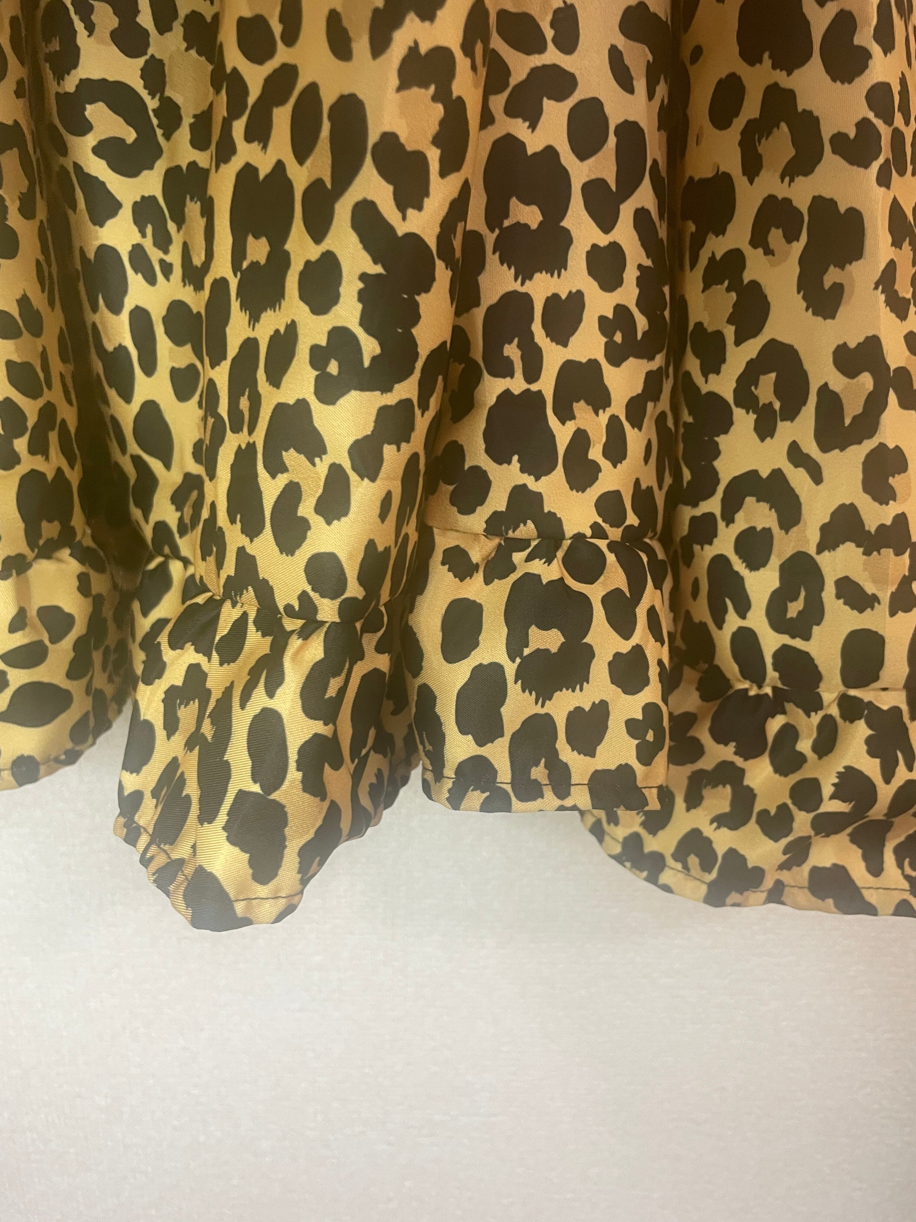 ロックなムード漂うトップと、揺れるレオパードスカートのコントラストが、視線を惹きつけるインパクト抜群の一着。