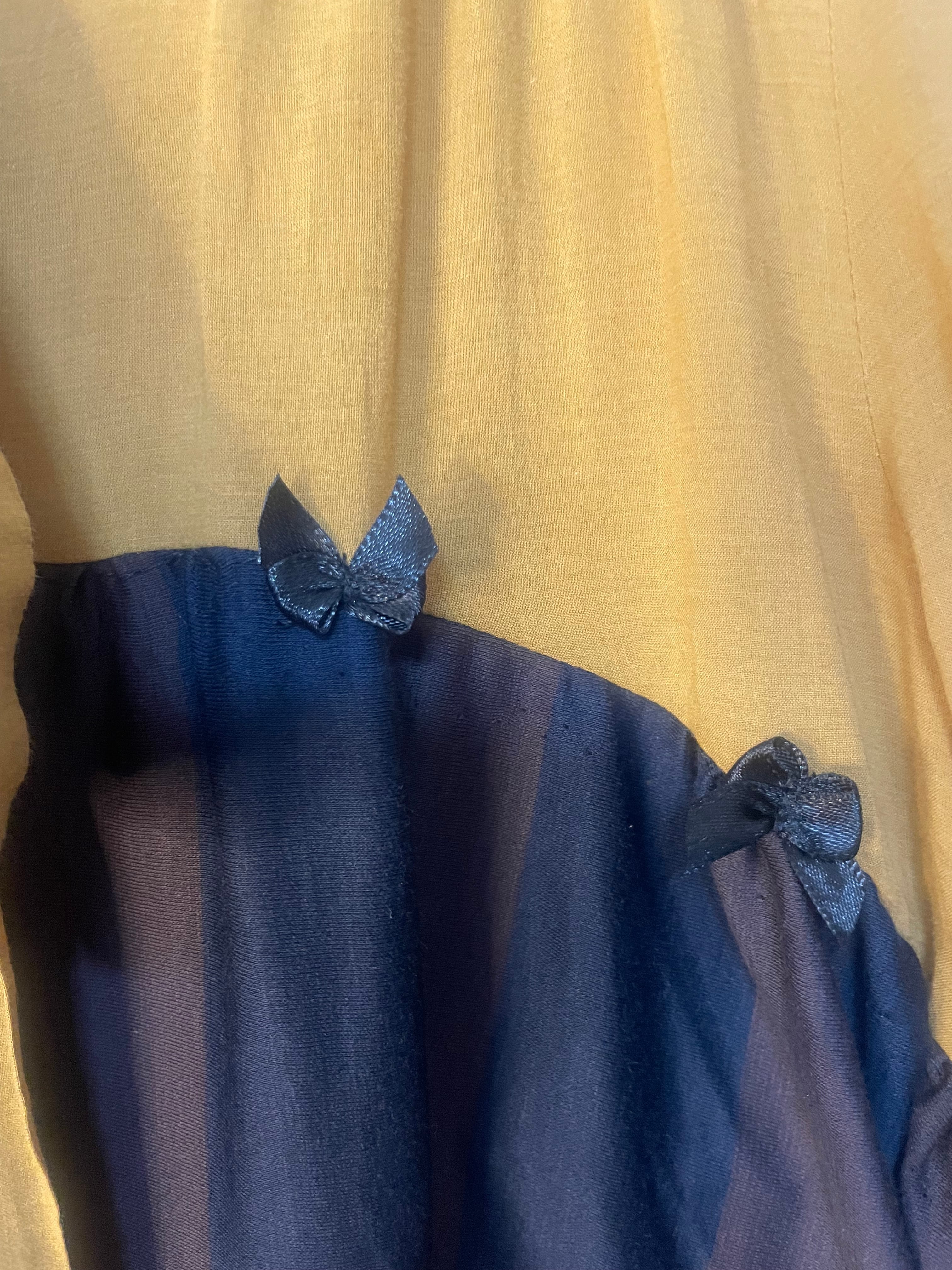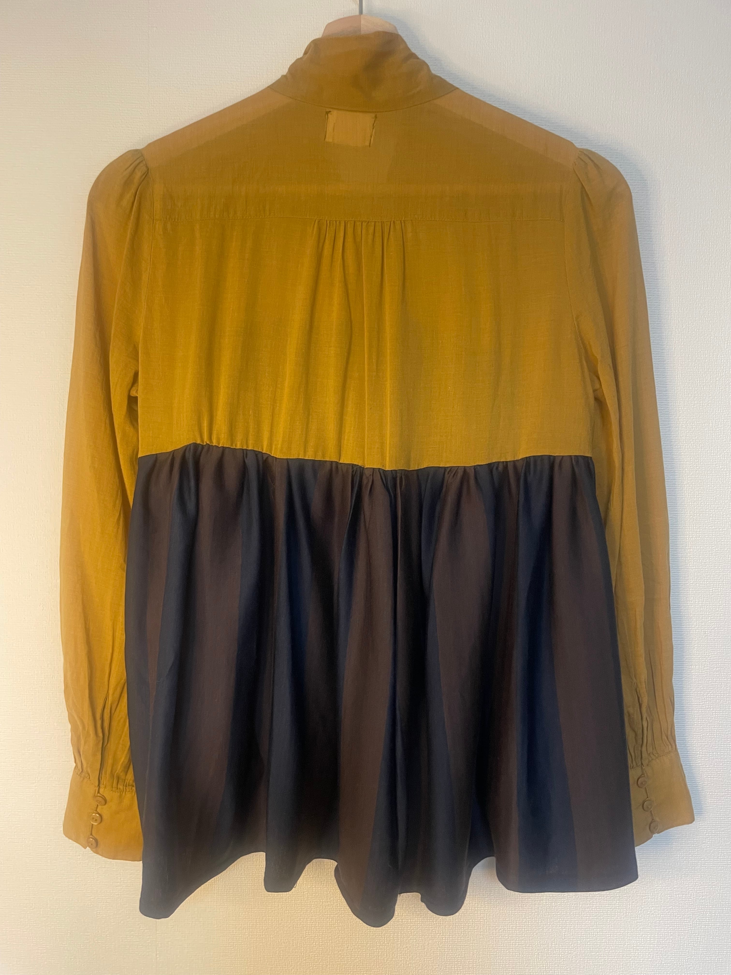 大きなリボンが付いたブラウス上部とボーダー生地をドッキングさせたこのトップス