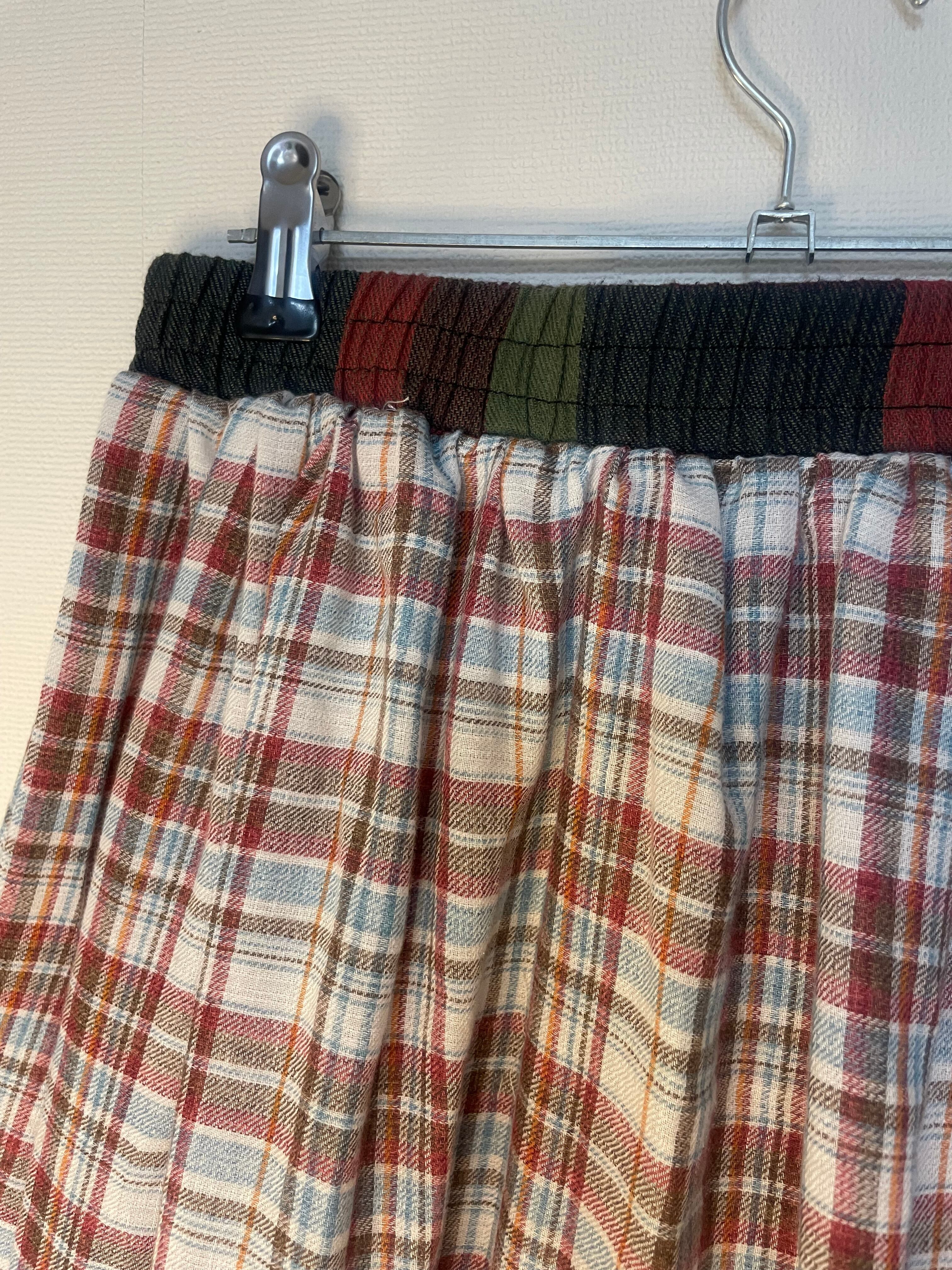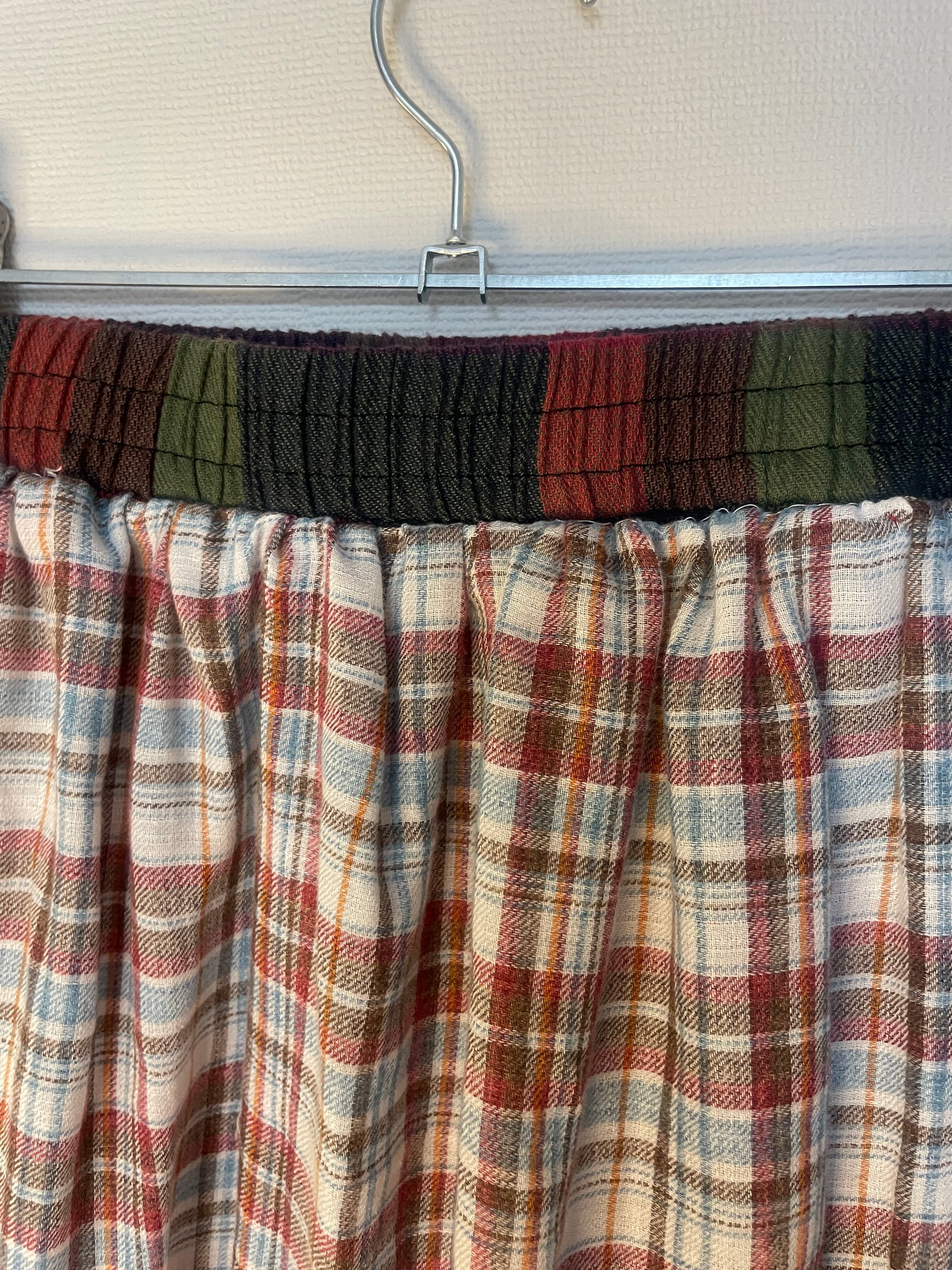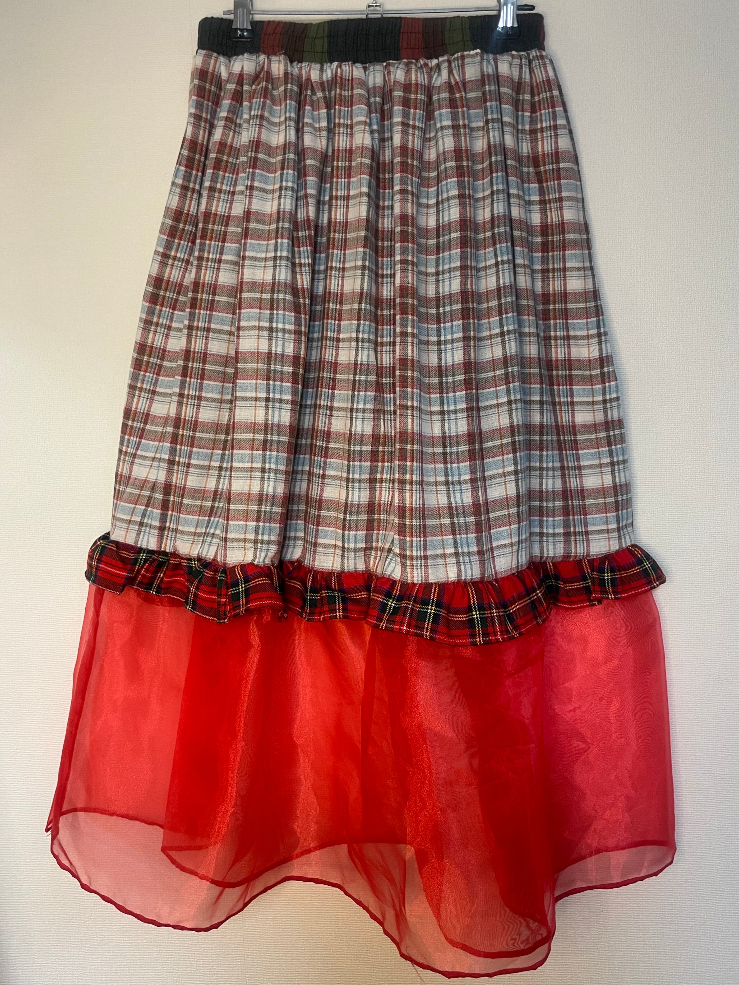 チェックとオーガンジーの生地を組み合わせた組み合わせたスカートです。