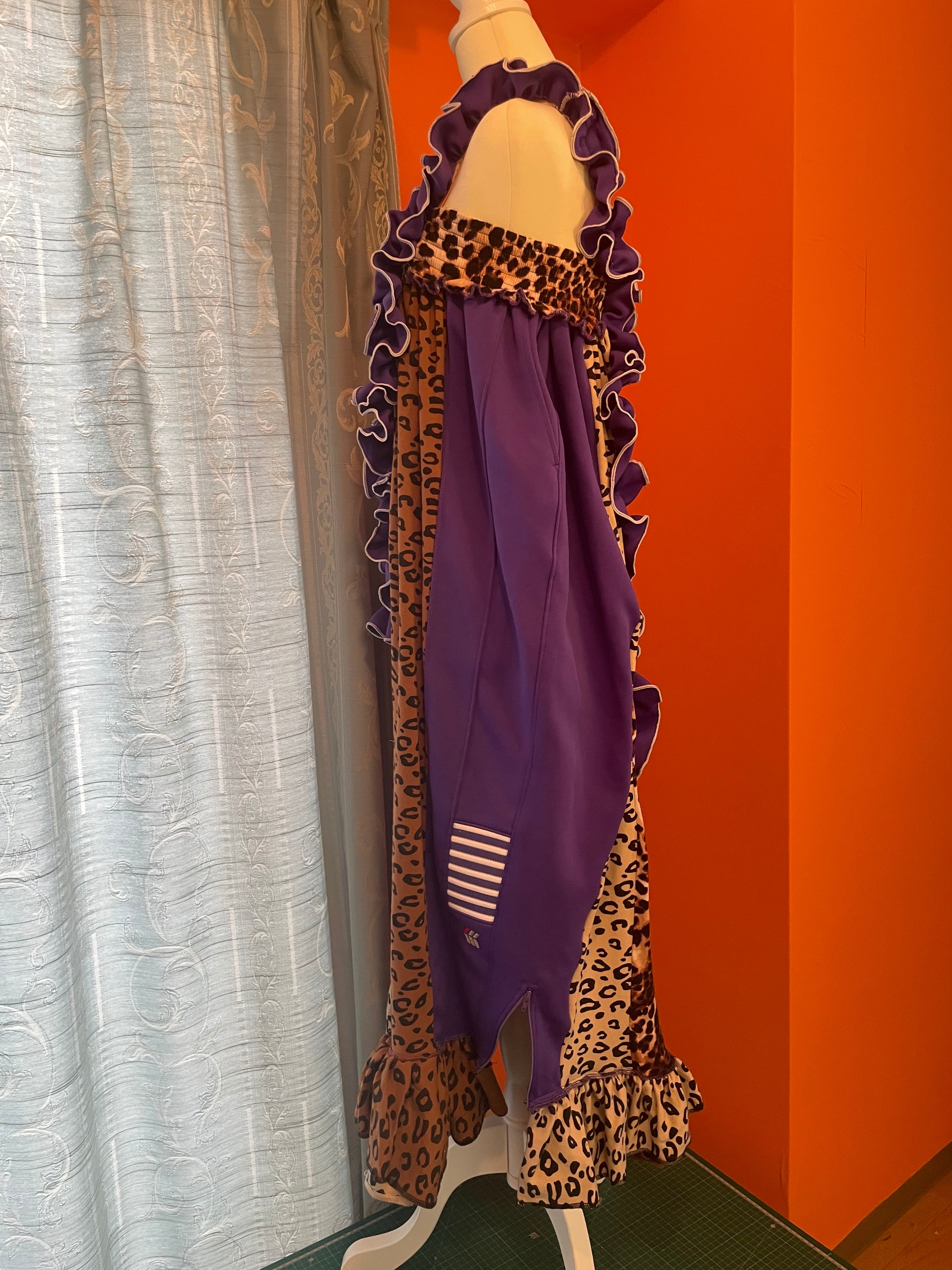 ジャージのフリルがアクセントとして加えられており、華やかさを演出します。
