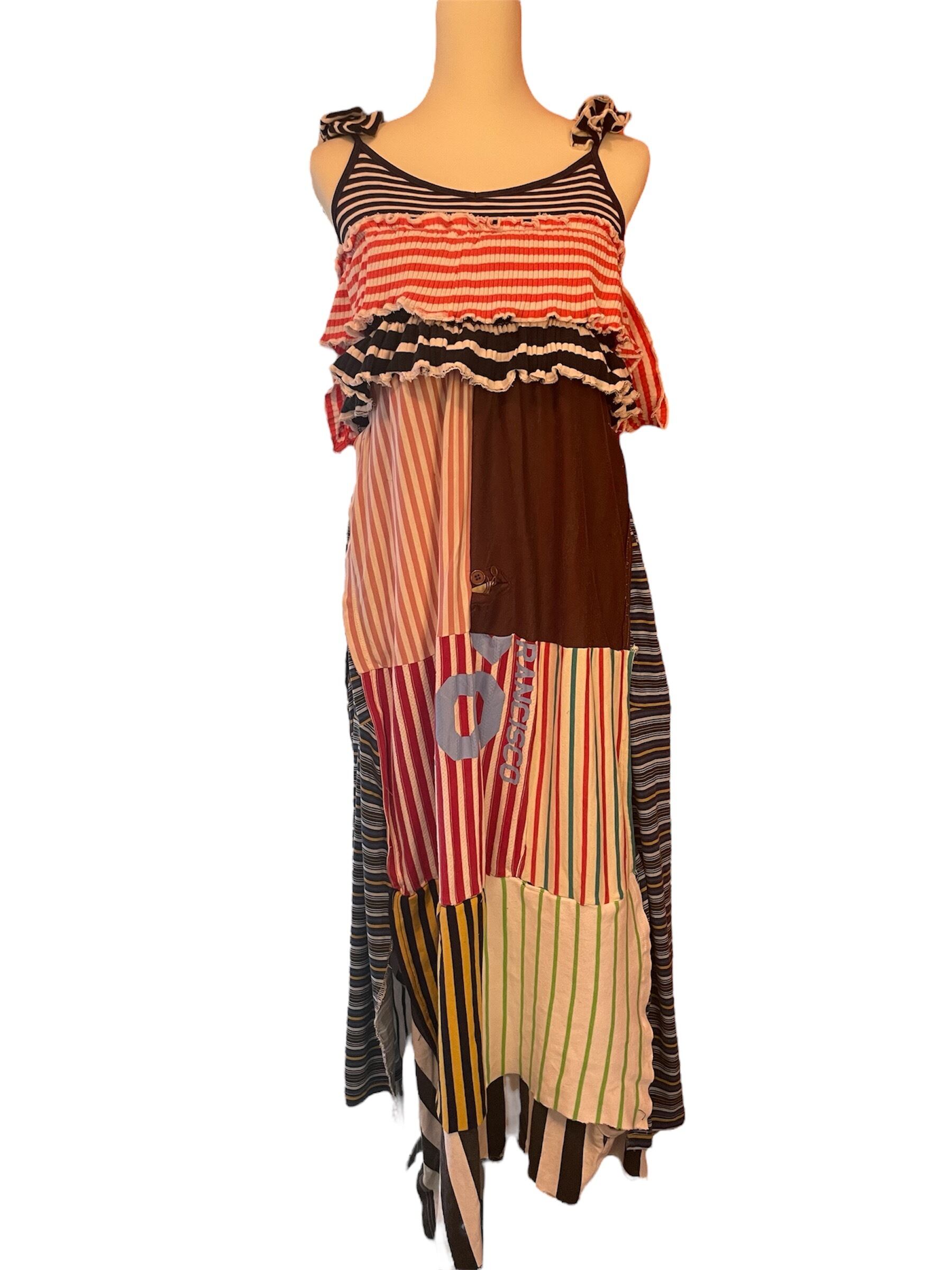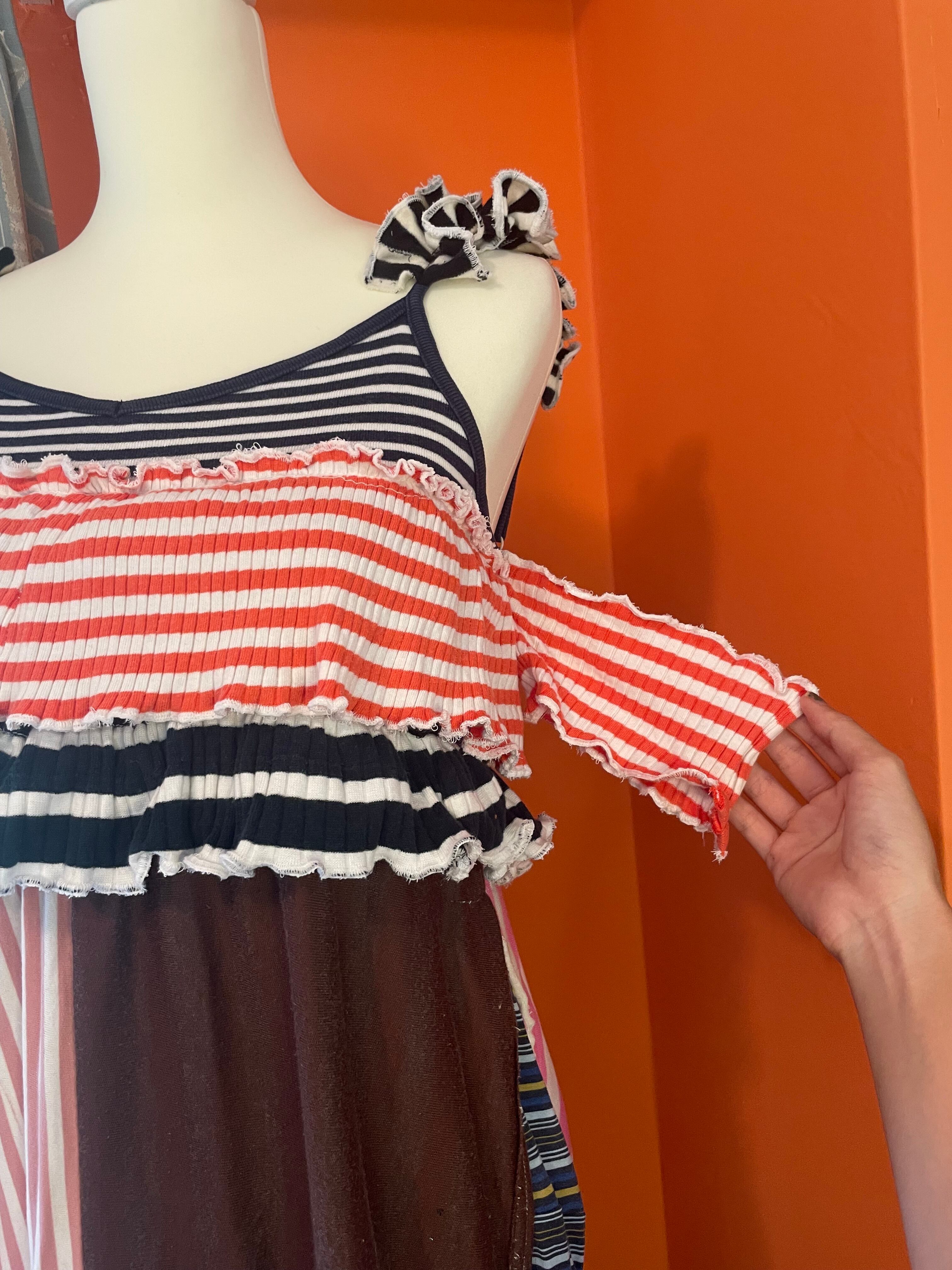 ボーダー柄の生地だけを集めたワンピース