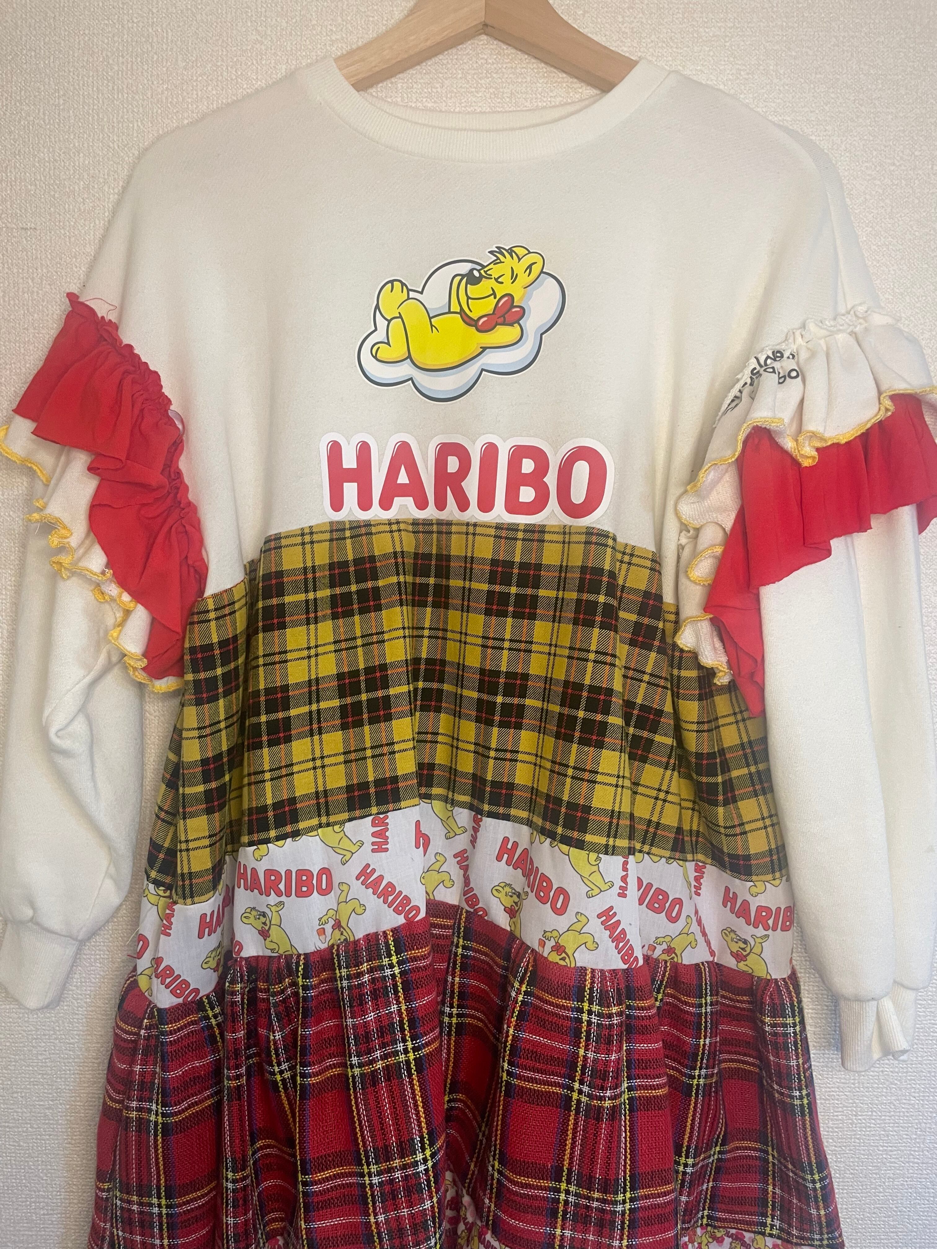 スカート部分は3種類のタータンチェック柄と2種類のキャラクター生地でコントラストされたティアードスカートとなっております。